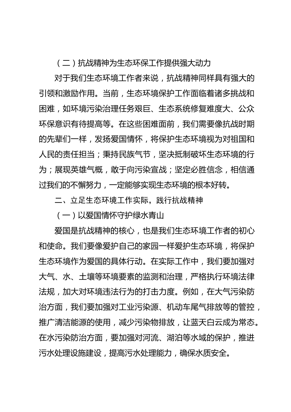 生態(tài)環(huán)境局副局長(zhǎng)關(guān)于在紀(jì)念中國(guó)人民抗日戰(zhàn)爭(zhēng)暨世界反法西斯戰(zhàn)爭(zhēng)勝利80周年大會(huì)及招待會(huì)上的重要講話精神專題研討發(fā)言材料