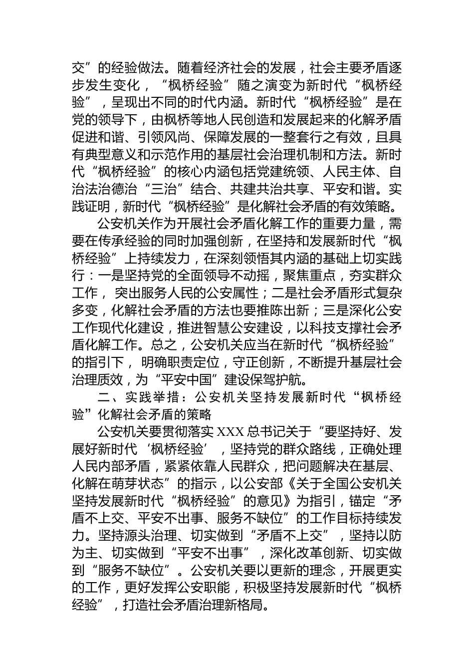 新時代“楓橋經(jīng)驗”視域下公安機關(guān)社會矛盾化解工作機制創(chuàng)新研究