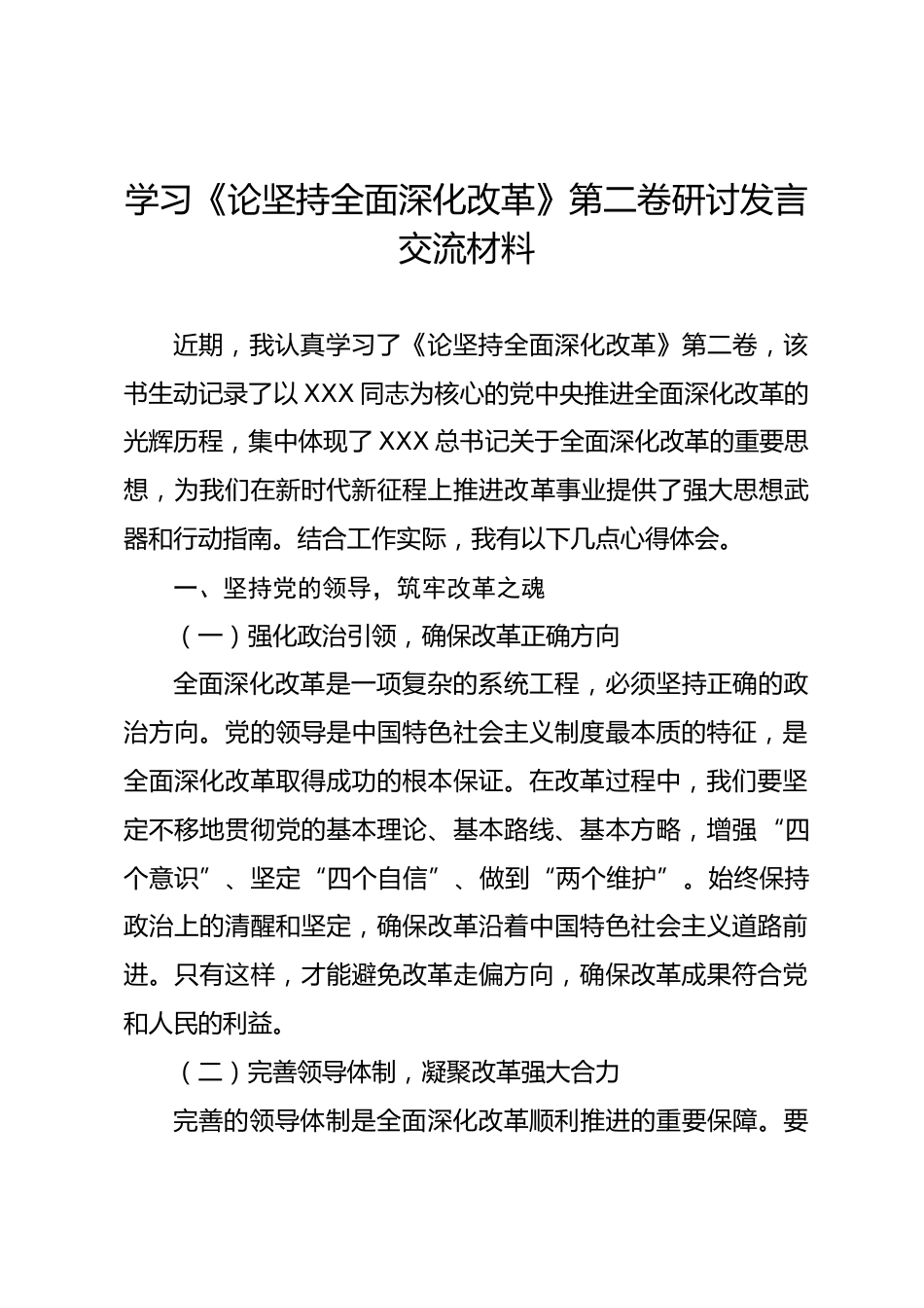學習《論堅持全面深化改革》第二卷研討發(fā)言交流材料