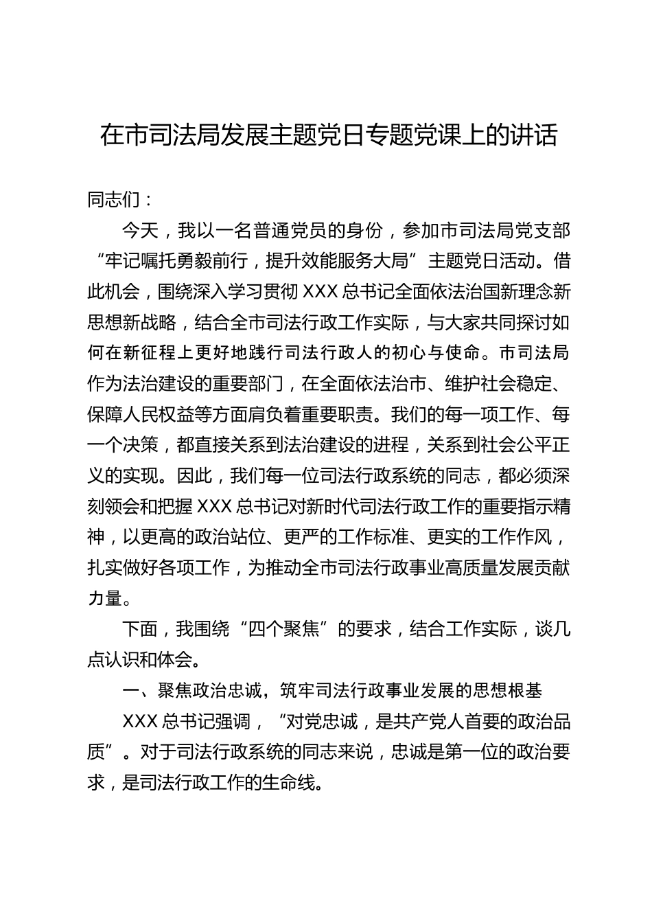 在市司法局發(fā)展主題黨日專題黨課上的講話