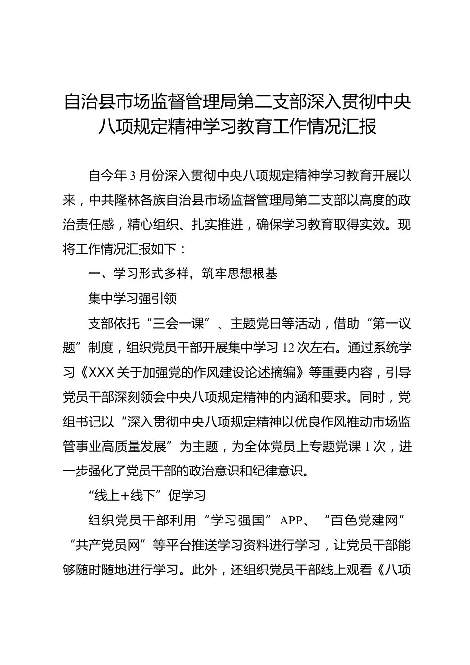 自治縣市場監(jiān)督管理局第二支部深入貫徹中央八項規(guī)定精神學習教育工作情況匯報