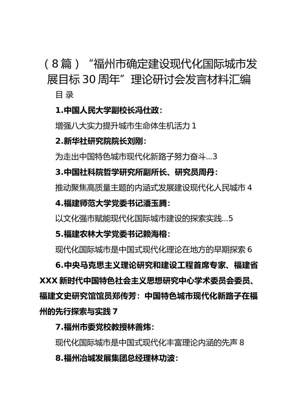 (8篇)“福州市確定建設(shè)現(xiàn)代化國際城市發(fā)展目標(biāo)30周年”理論研討會發(fā)言材料匯編