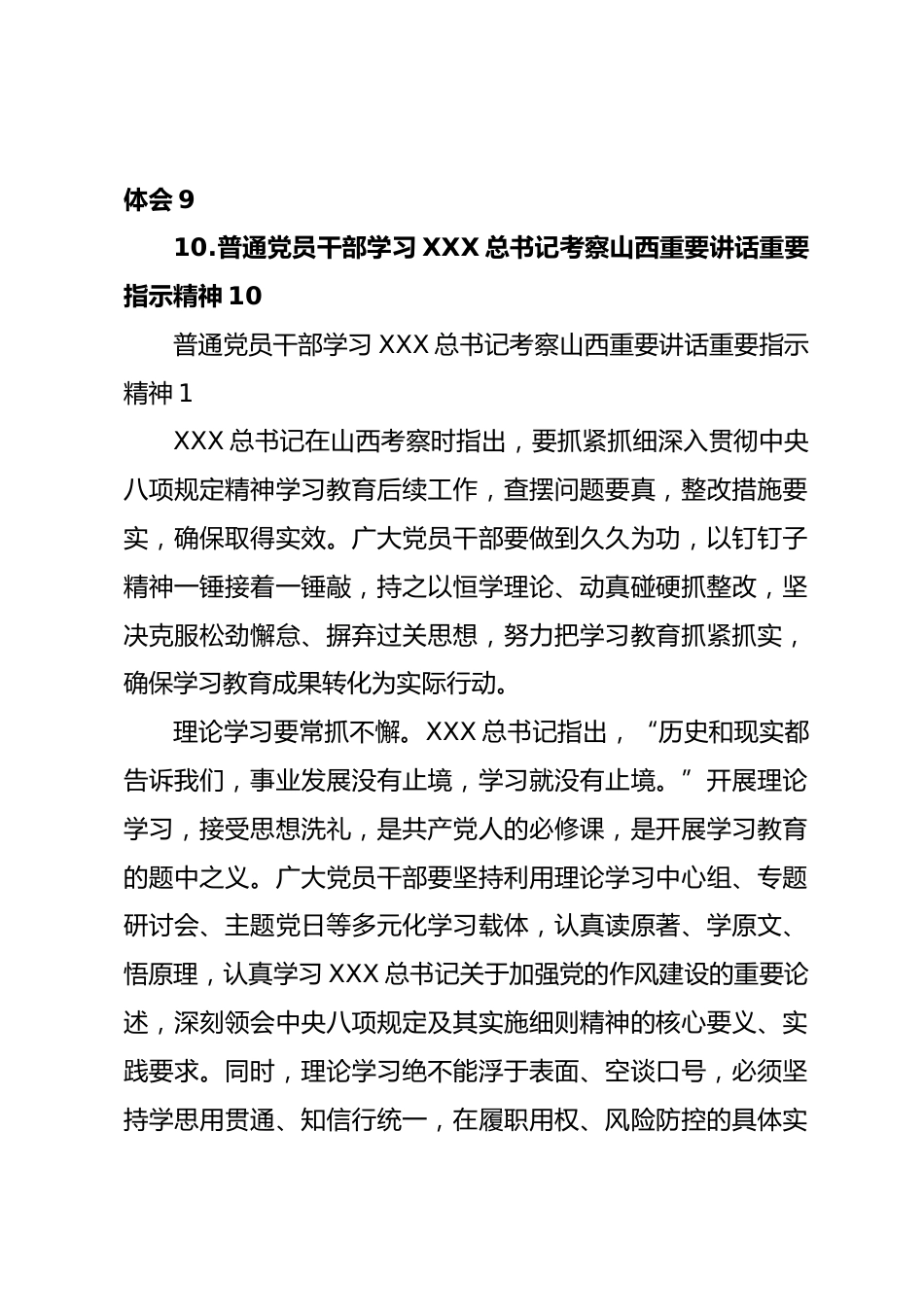(10篇)普通黨員干部學(xué)習(xí)習(xí)近平總書(shū)記考察山西重要講話重要指示心得體會(huì)匯編