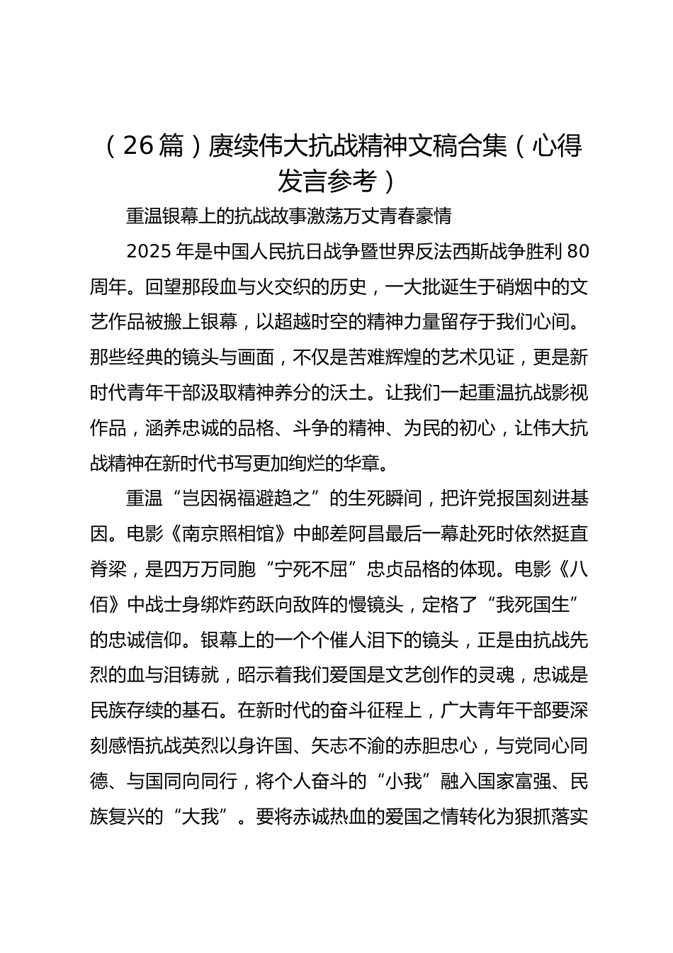 (26篇)賡續(xù)偉大抗戰(zhàn)精神文稿合集(心得發(fā)言參考)