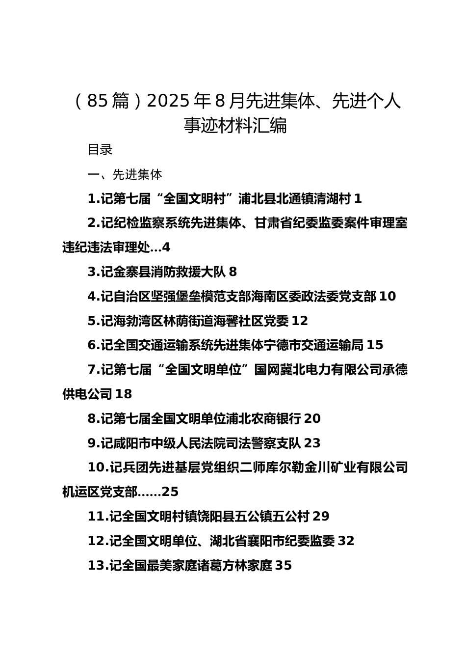 (85篇)2025年8月先進集體、先進個人事跡材料匯編