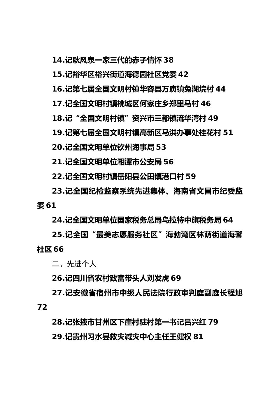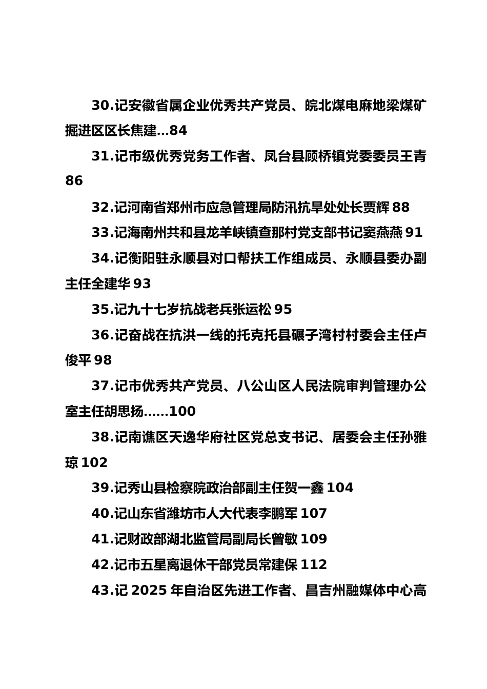 (85篇)2025年8月先進集體、先進個人事跡材料匯編目錄一、先進集體1.記第七屆“全國文明村”浦北縣北通鎮(zhèn)清湖村12.記紀檢監(jiān)察系統(tǒng)先進集體、甘肅省紀委監(jiān)委案件審理室違紀違法審理處…43.記金寨縣消防救援大隊84.記自治區(qū)堅強堡壘模范支部海南區(qū)委政法委黨支部105.記海勃灣區(qū)林蔭街道海馨社區(qū)黨委126.記全國交通運輸系統(tǒng)先進集體寧德市交通運輸局157.記第七屆“全國文明單位”國網冀北電力有限公司承德供電公司188.記第七屆全國文明單位浦北農商銀行209.記咸陽市中級人民法院司法警察支隊2310.記兵團先進基層黨組織二師庫爾勒金川礦業(yè)有限公司機運區(qū)黨支部……2511.記全...