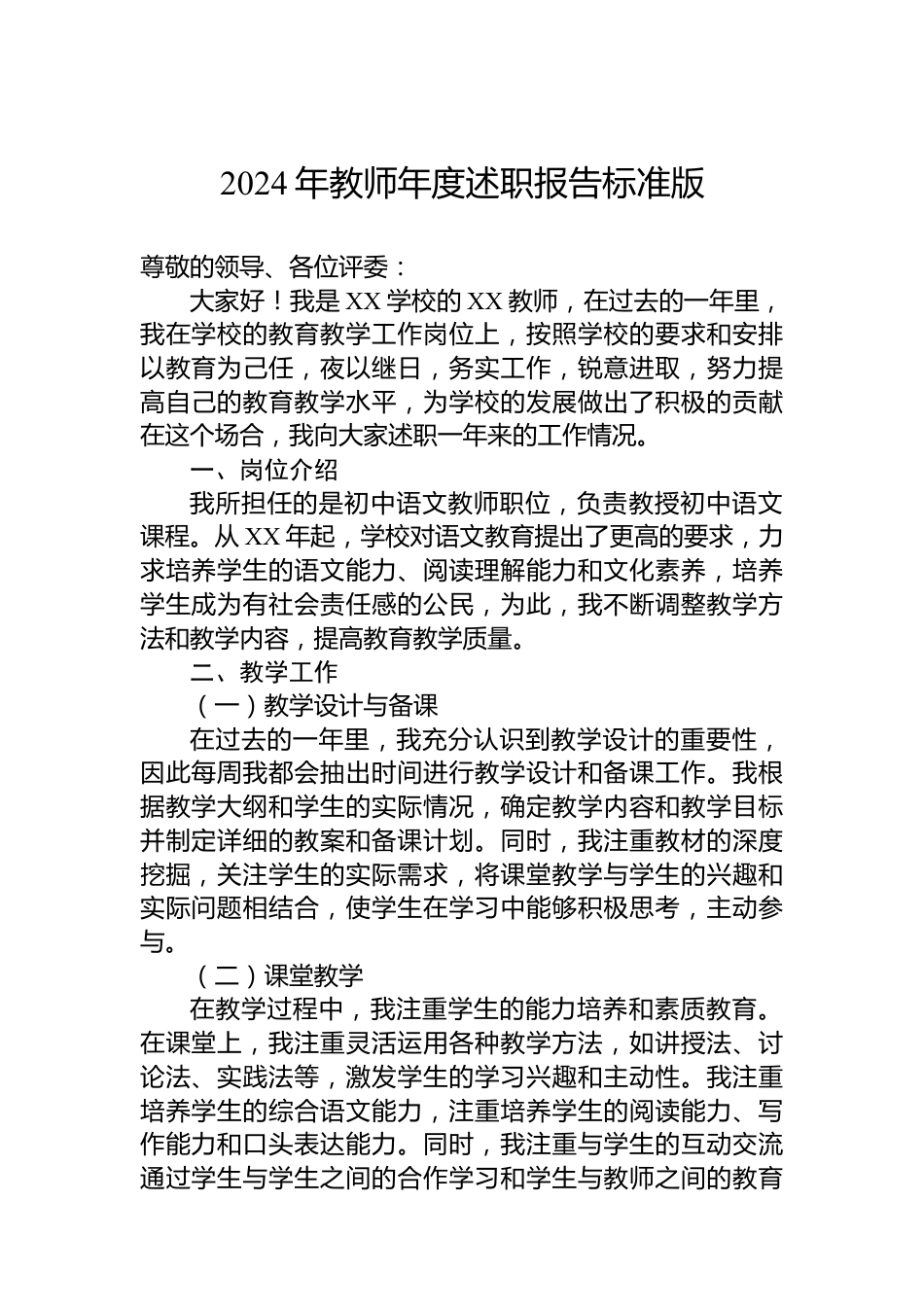 2024年教師年度述職報(bào)告標(biāo)準(zhǔn)版