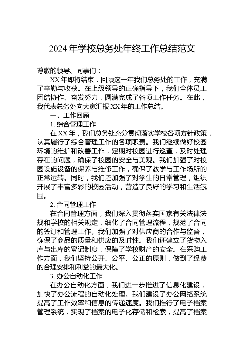 2024年學(xué)??倓?wù)處年終工作總結(jié)范文