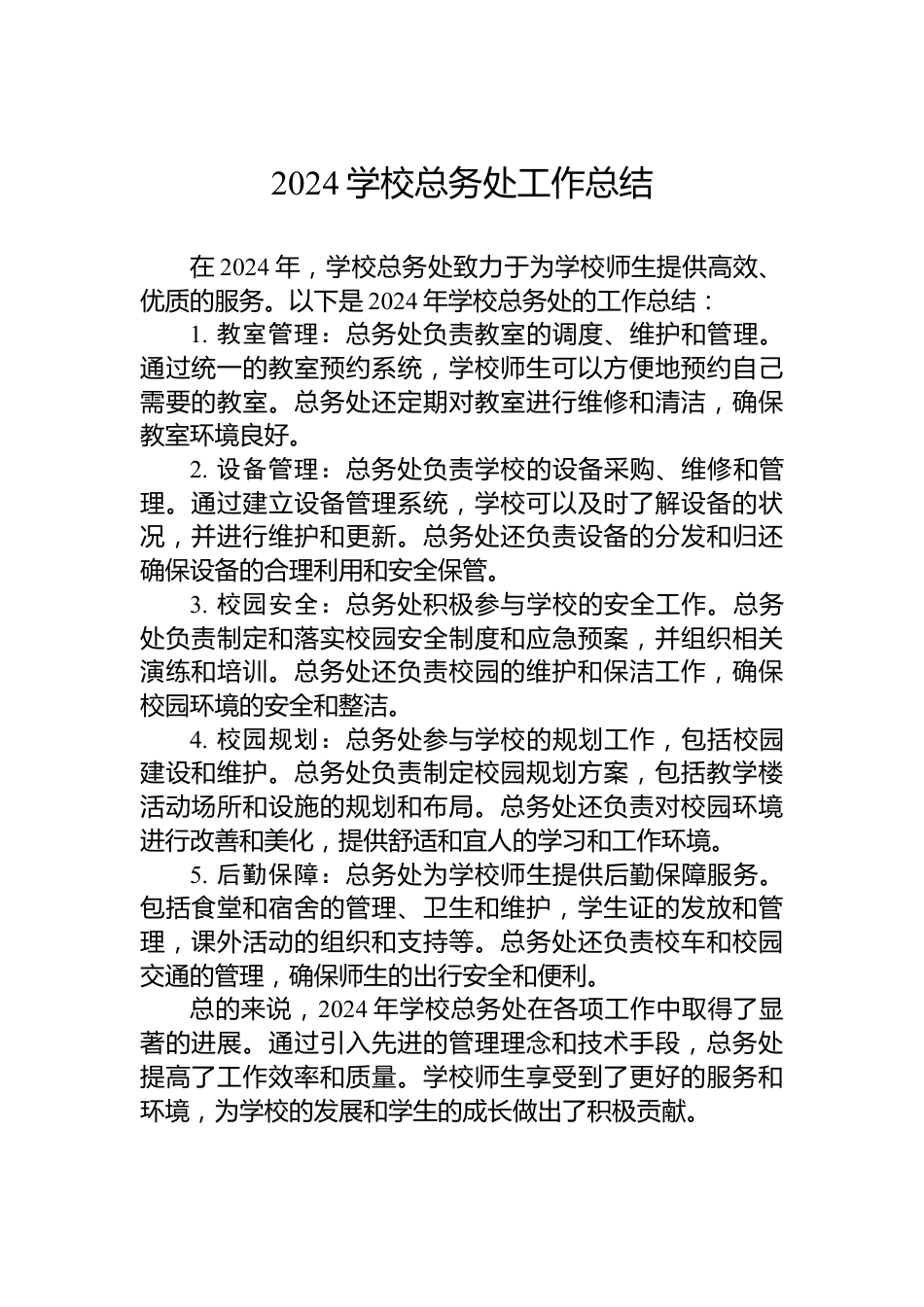 2024學(xué)??倓?wù)處工作總結(jié)
