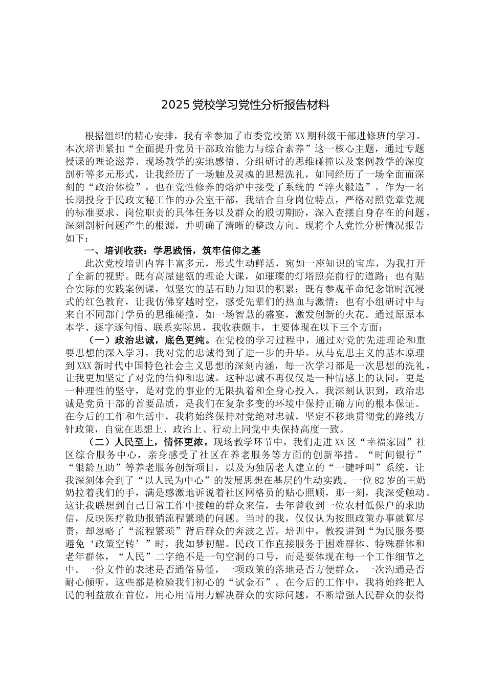 2025黨校學習黨性分析報告材料