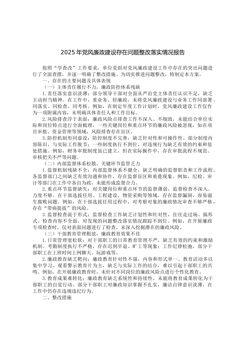 2025年黨風(fēng)廉政建設(shè)存在問(wèn)題整改落實(shí)情況報(bào)告