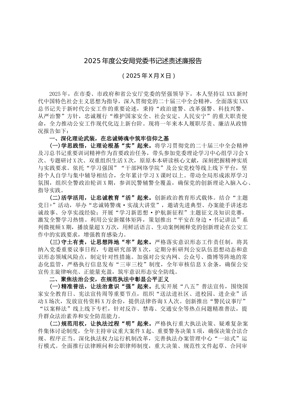 2025年度公安局黨委書記述責(zé)述廉報(bào)告