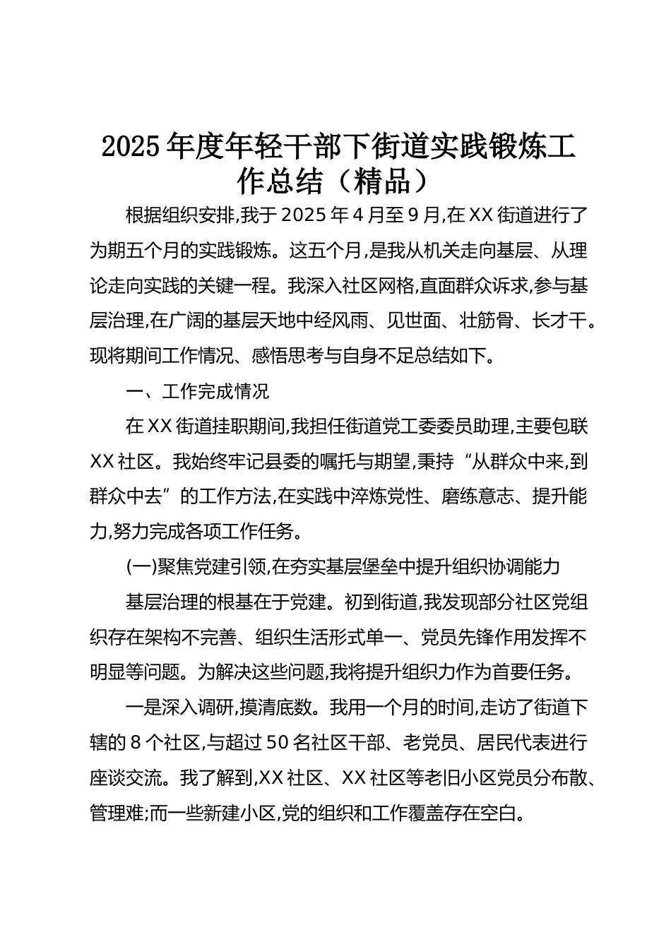 2025年度年輕干部下街道實踐鍛煉工作總結(jié)(精品)