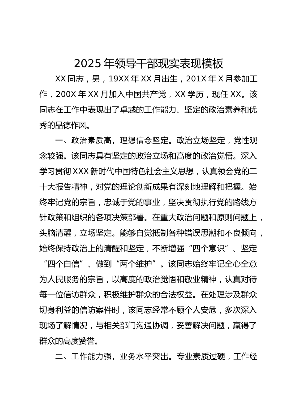2025年領(lǐng)導(dǎo)干部現(xiàn)實(shí)表現(xiàn)模板