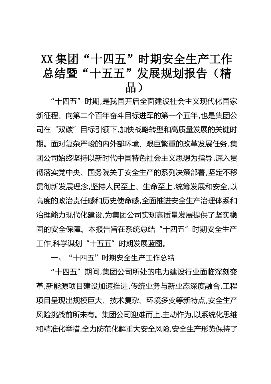 XX集團“十四五”時期安全生產(chǎn)工作總結暨“十五五”發(fā)展規(guī)劃報告(精品)