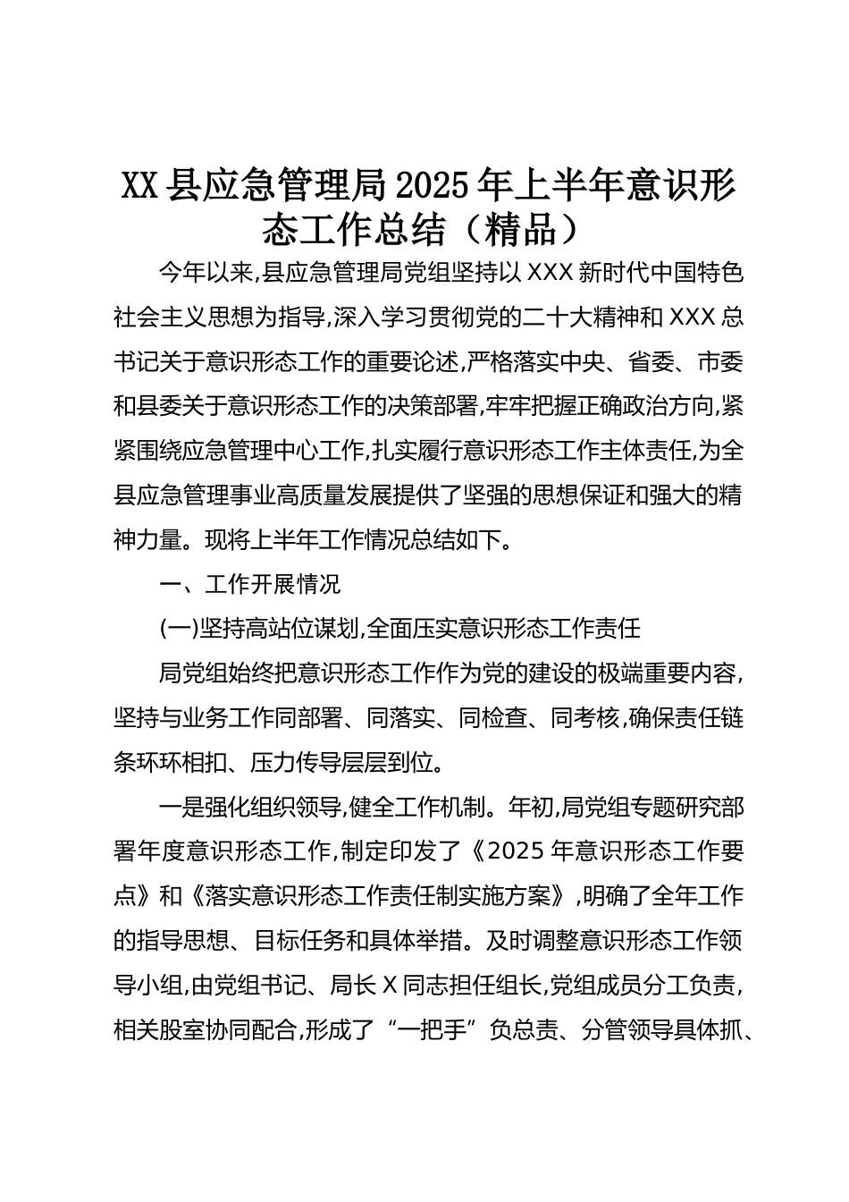 XX縣應急管理局2025年上半年意識形態(tài)工作總結(精品)