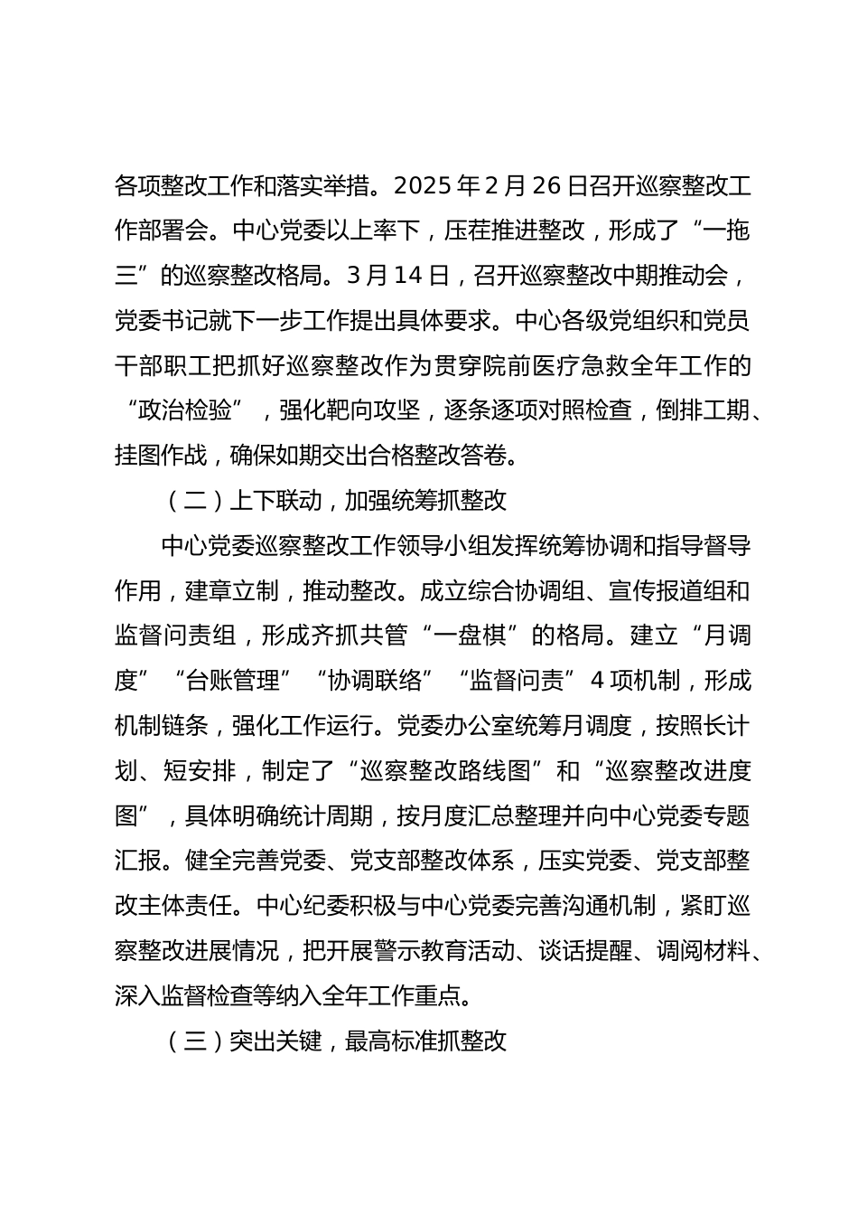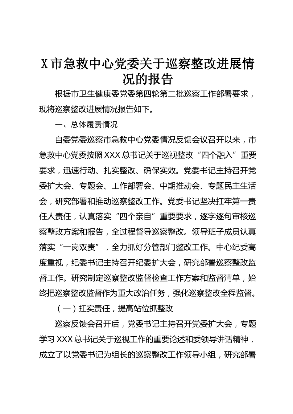 X市急救中心黨委關(guān)于巡察整改進(jìn)展情況的報(bào)告