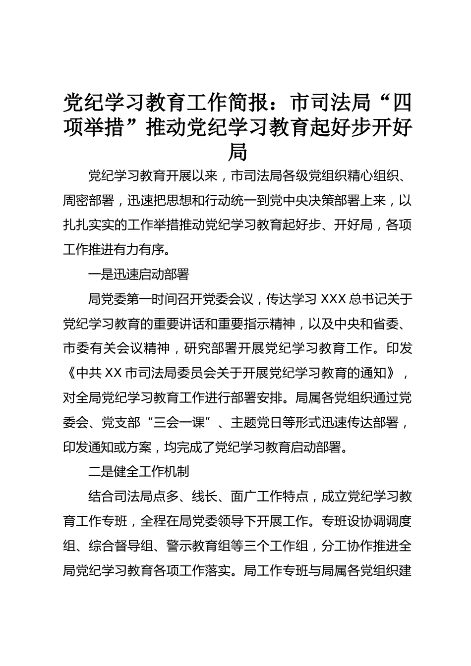 黨紀(jì)學(xué)習(xí)教育工作簡報(bào):市司法局“四項(xiàng)舉措”推動(dòng)黨紀(jì)學(xué)習(xí)教育起好步開好局