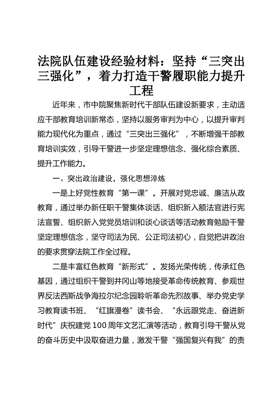 法院隊(duì)伍建設(shè)經(jīng)驗(yàn)材料:堅(jiān)持“三突出三強(qiáng)化”,著力打造干警履職能力提升工程