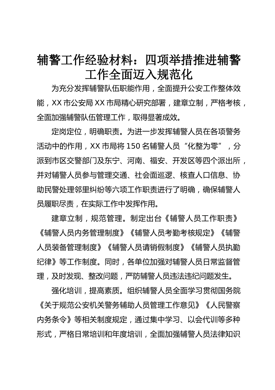 輔警工作經(jīng)驗材料:四項舉措推進輔警工作全面邁入規(guī)范化
