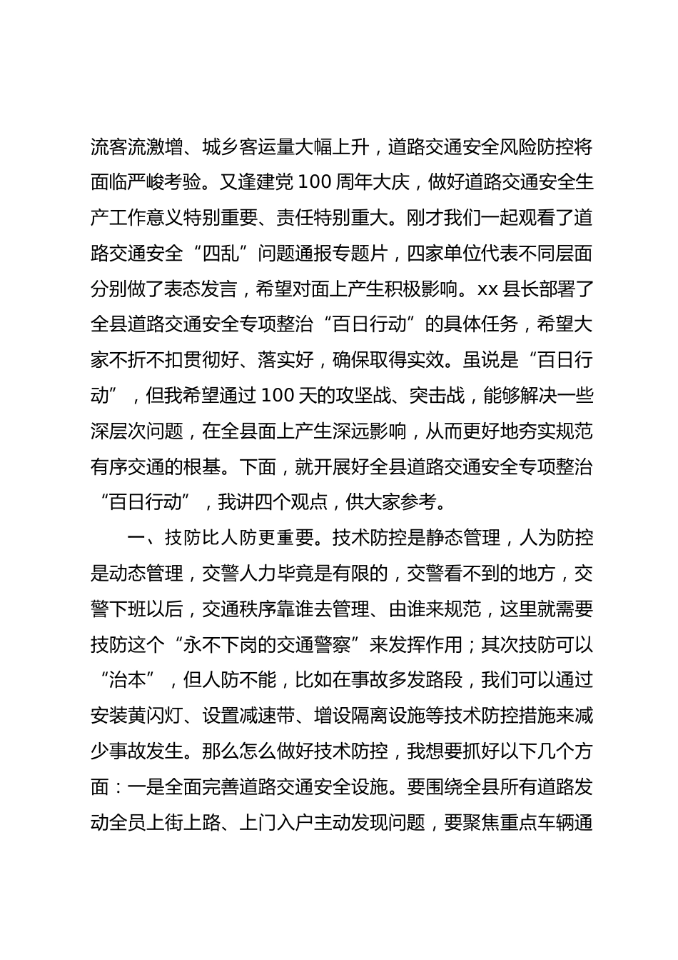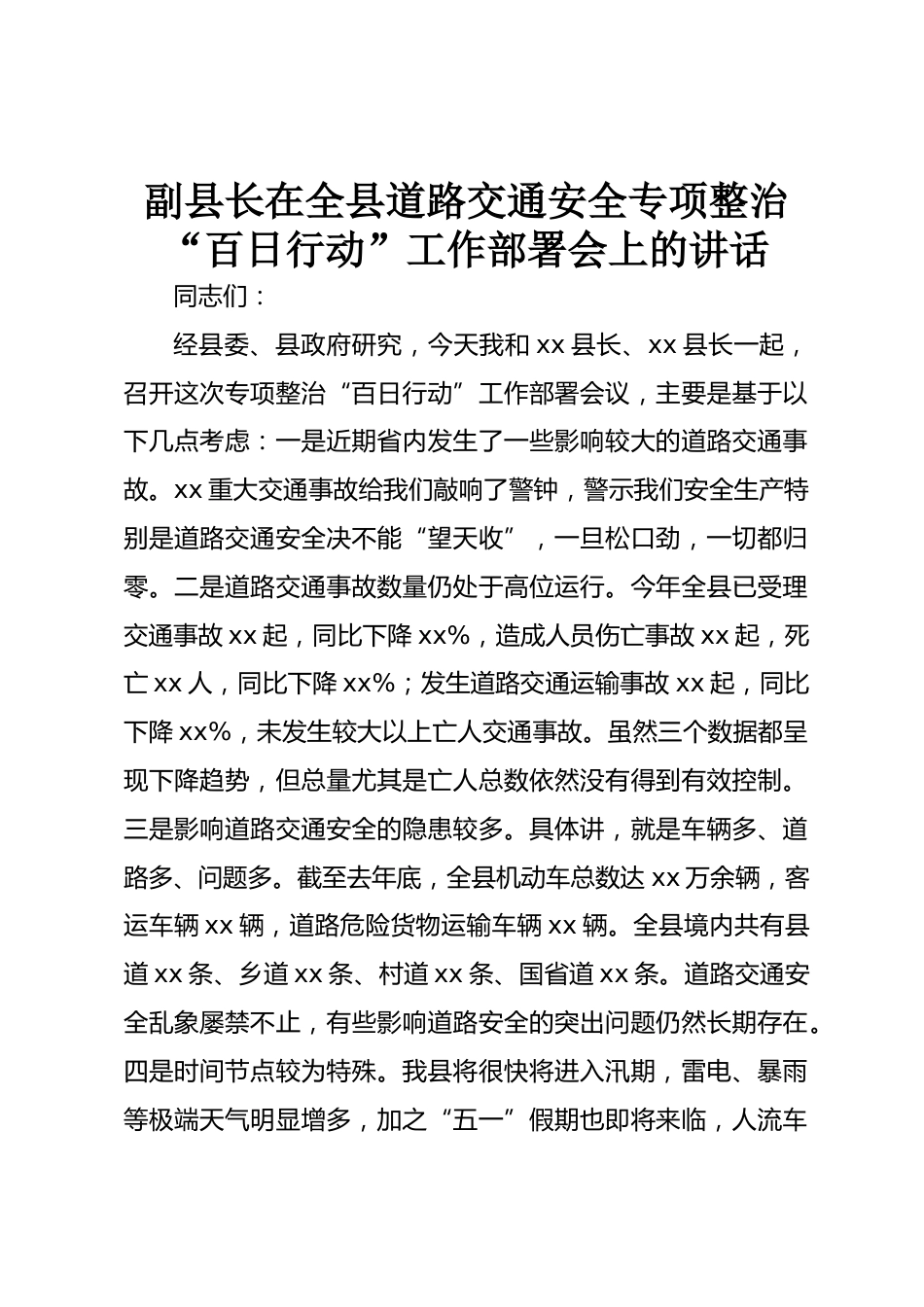 副縣長(zhǎng)在全縣道路交通安全專項(xiàng)整治“百日行動(dòng)”工作部署會(huì)上的講話