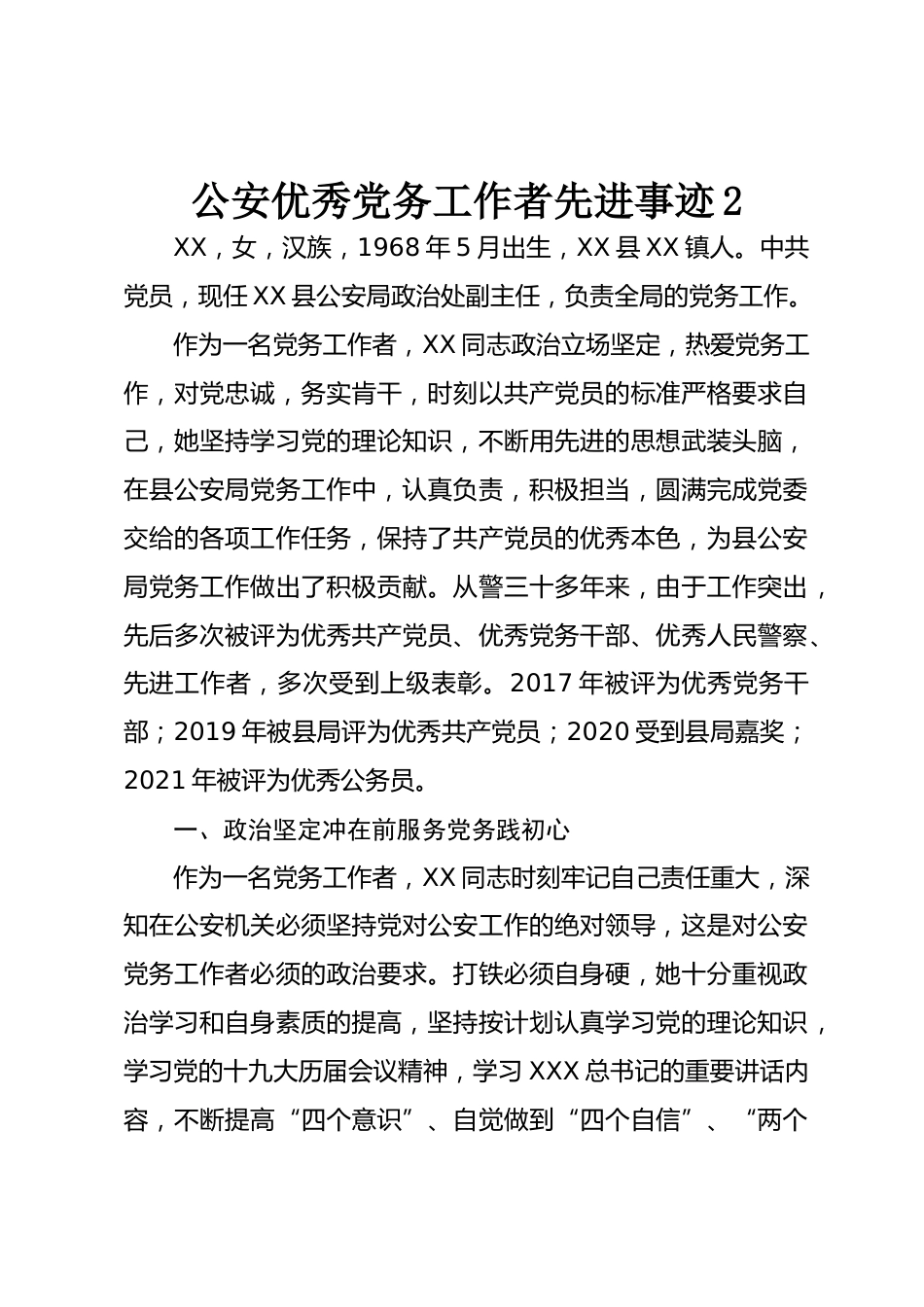 公安優(yōu)秀黨務(wù)工作者先進(jìn)事跡2