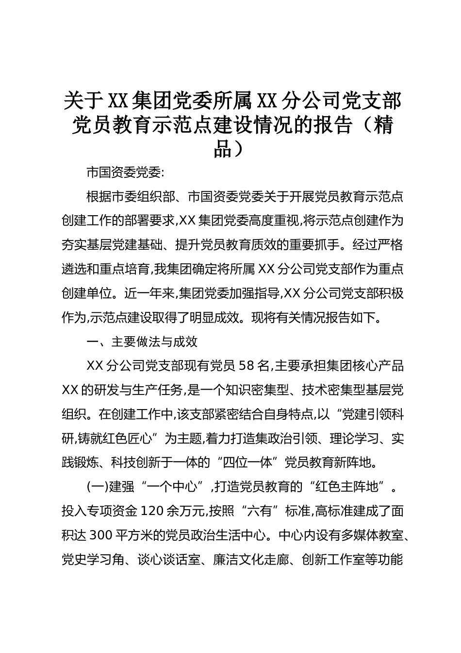 關(guān)于XX集團(tuán)黨委所屬XX分公司黨支部黨員教育示范點(diǎn)建設(shè)情況的報(bào)告(精品)