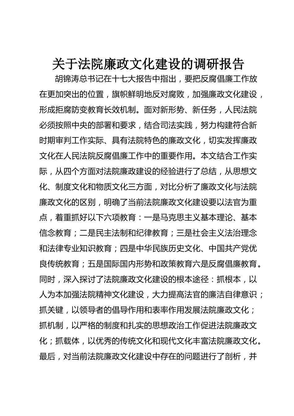 關(guān)于法院廉政文化建設(shè)的調(diào)研報(bào)告