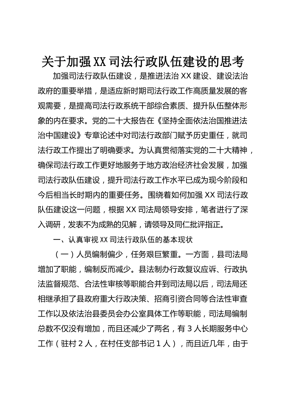 關(guān)于加強XX司法行政隊伍建設(shè)的思考VIP免費