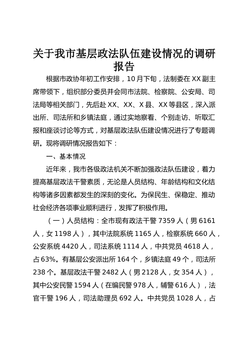 關(guān)于我市基層政法隊(duì)伍建設(shè)情況的調(diào)研報(bào)告