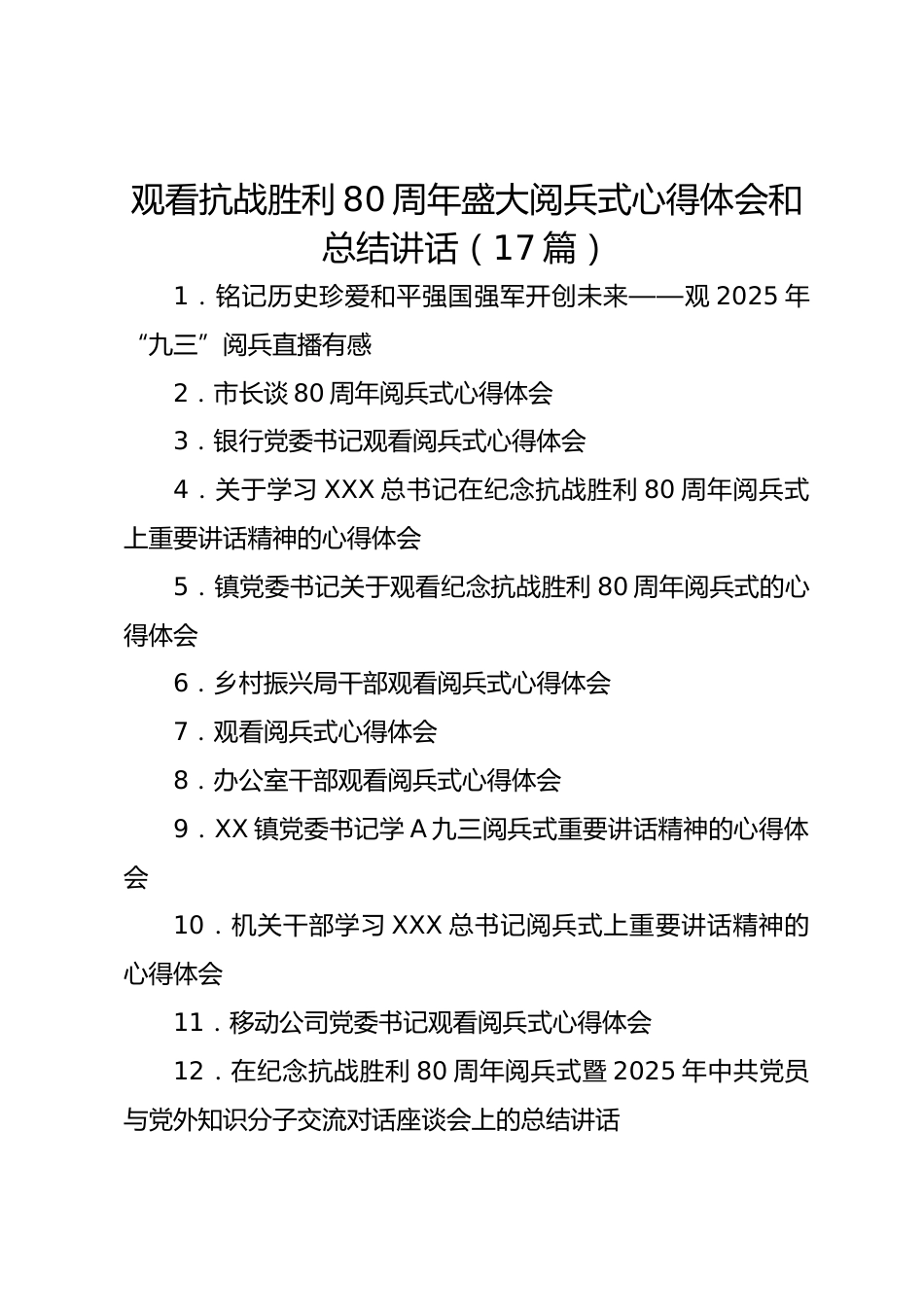 觀看抗戰(zhàn)勝利80周年盛大閱兵式心得體會和總結(jié)講話(17篇)