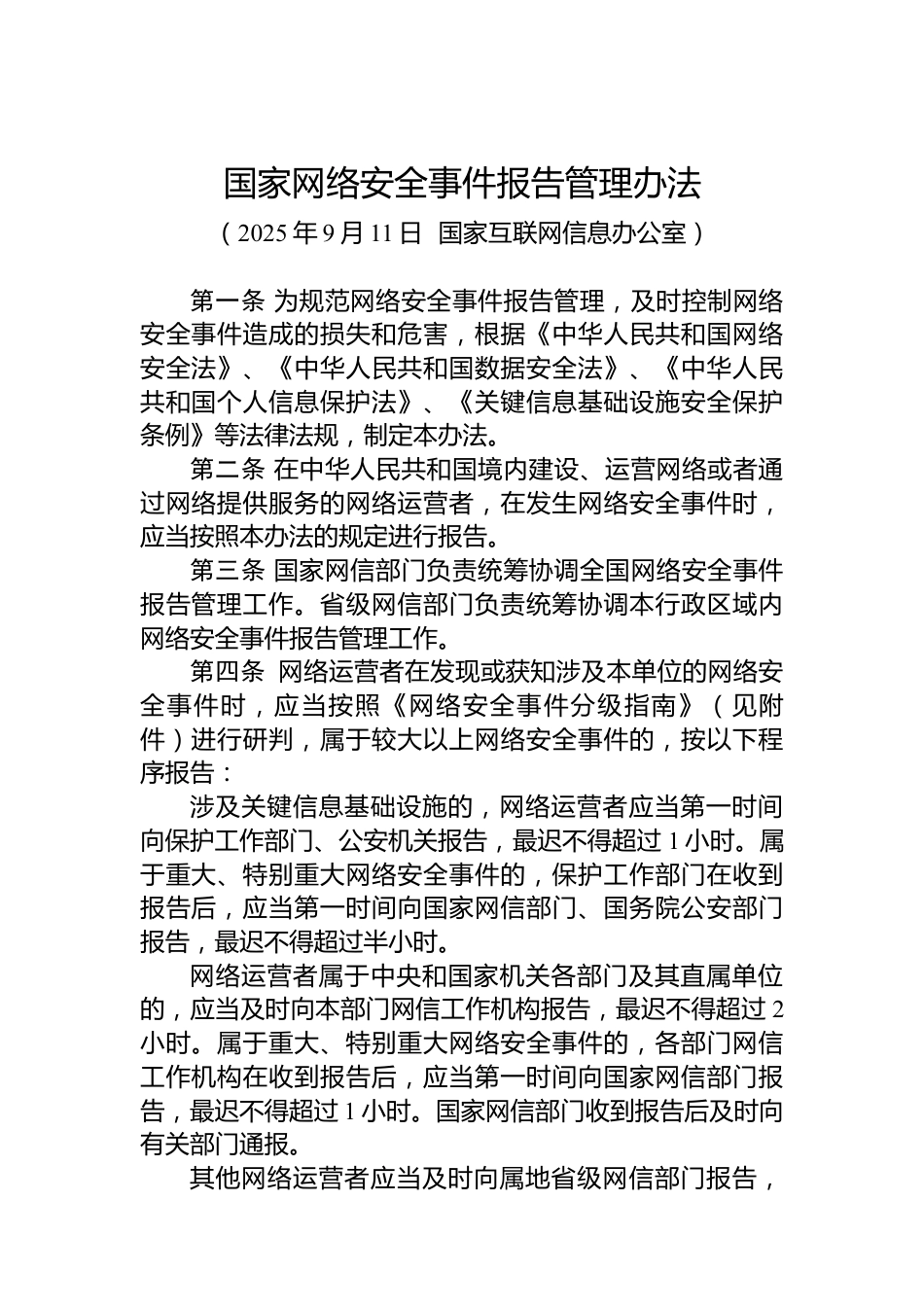 國家網(wǎng)絡安全事件報告管理辦法