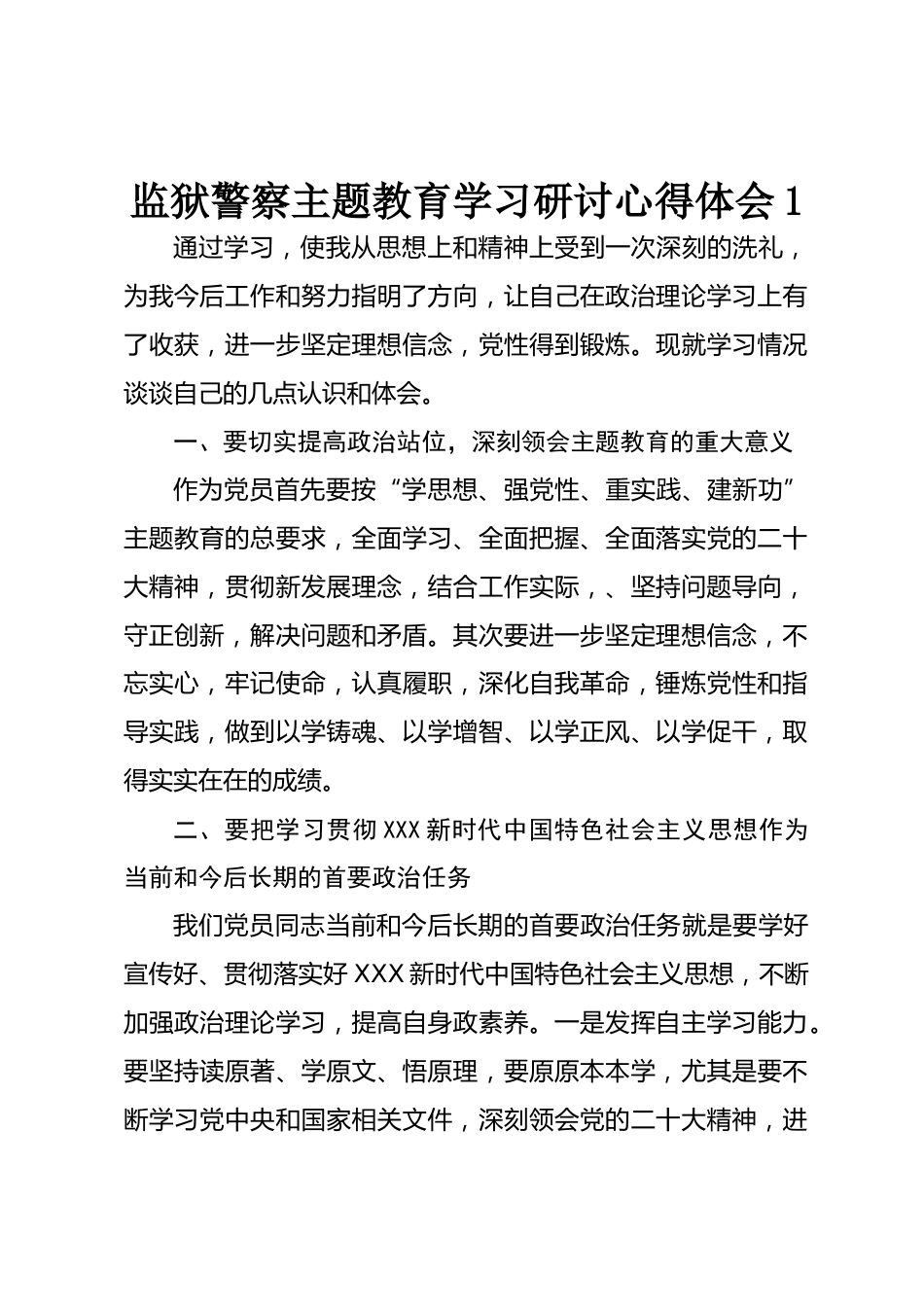 監(jiān)獄警察主題教育學(xué)習(xí)研討心得體會(huì)1