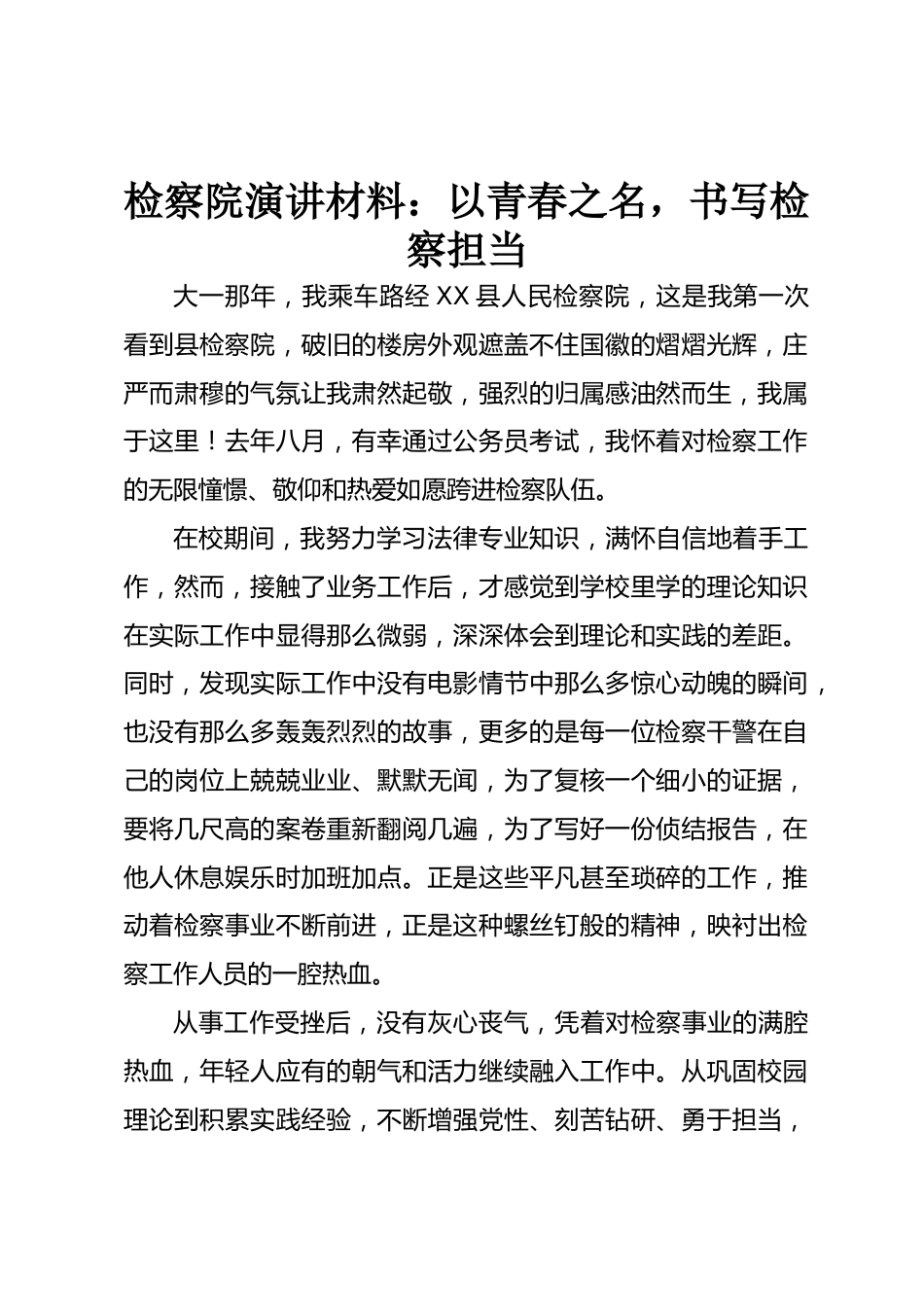 檢察院演講材料:以青春之名,書寫檢察擔(dān)當(dāng)