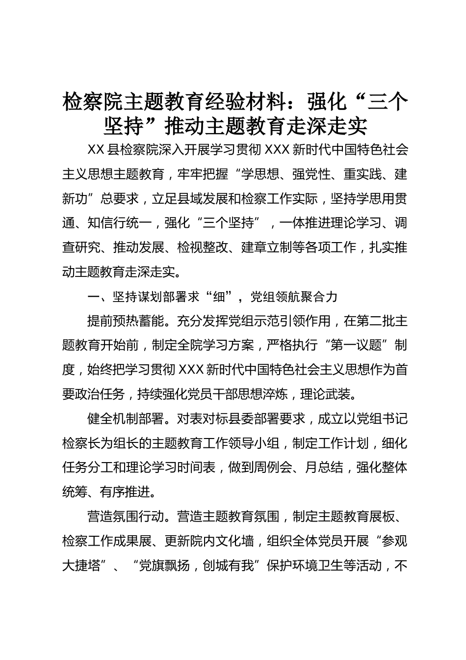 檢察院主題教育經(jīng)驗材料:強化“三個堅持”推動主題教育走深走實VIP免費