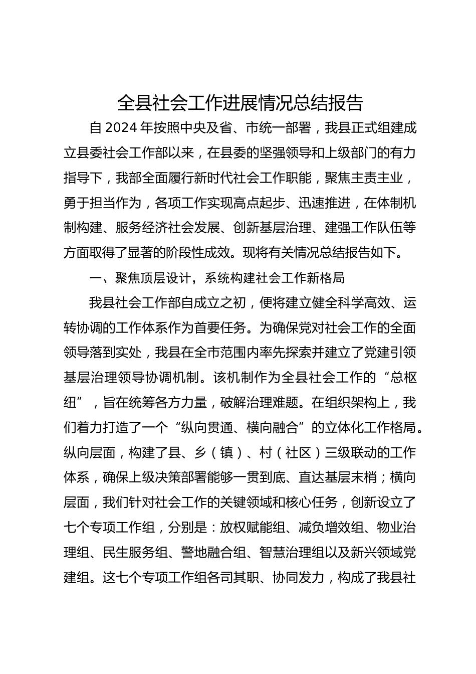 全縣社會工作進(jìn)展情況總結(jié)報告