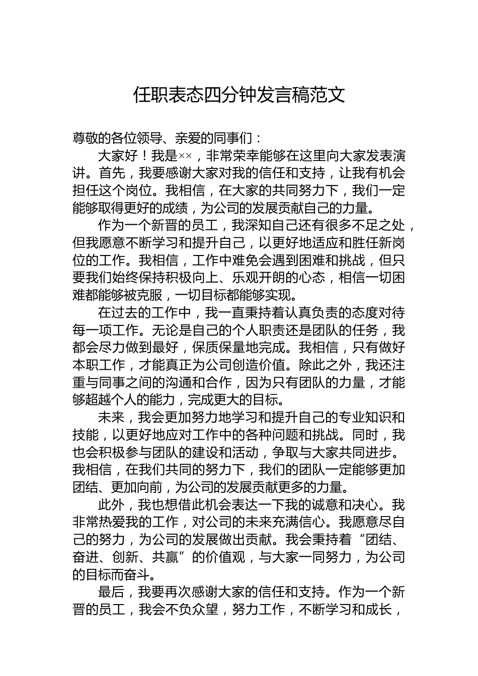 任職表態(tài)四分鐘發(fā)言稿范文