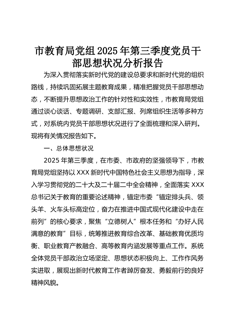 市教育局黨組2025年第三季度黨員干部思想狀況分析報告