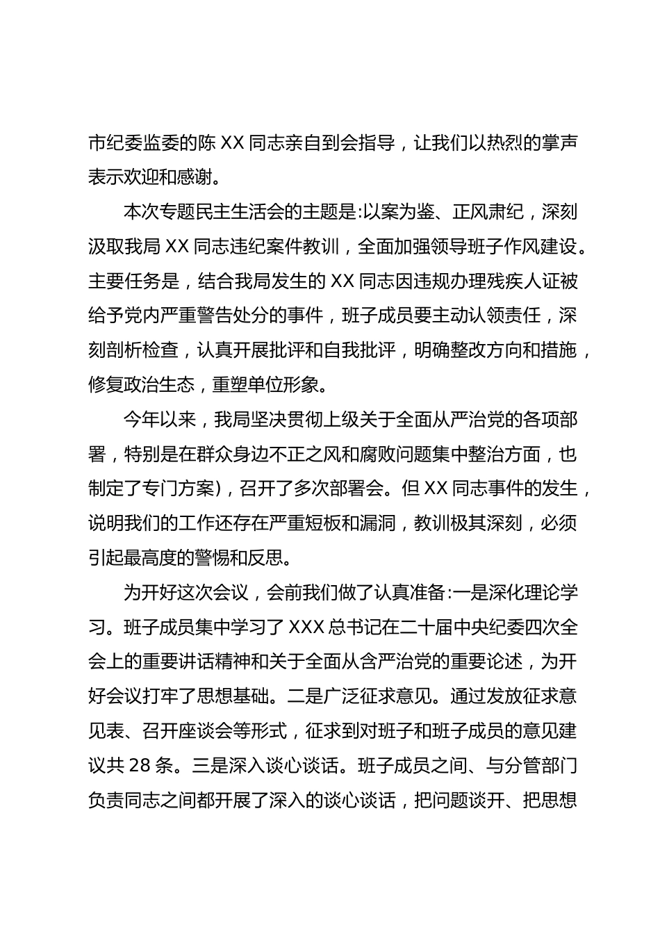 市局領(lǐng)導班子專題民主生活會會議記錄