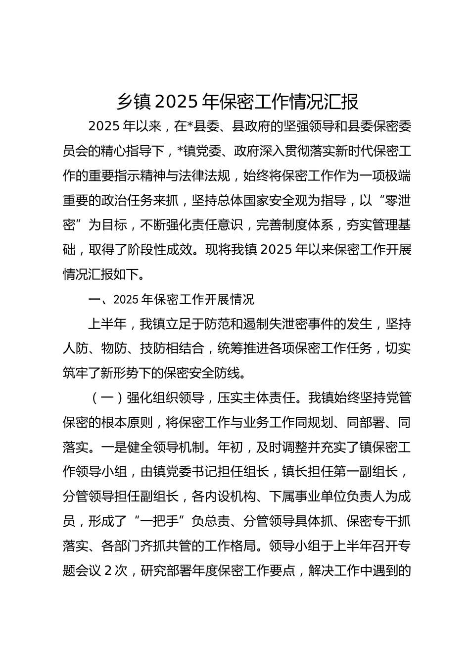 鄉(xiāng)鎮(zhèn)2025年保密工作情況匯報(bào)