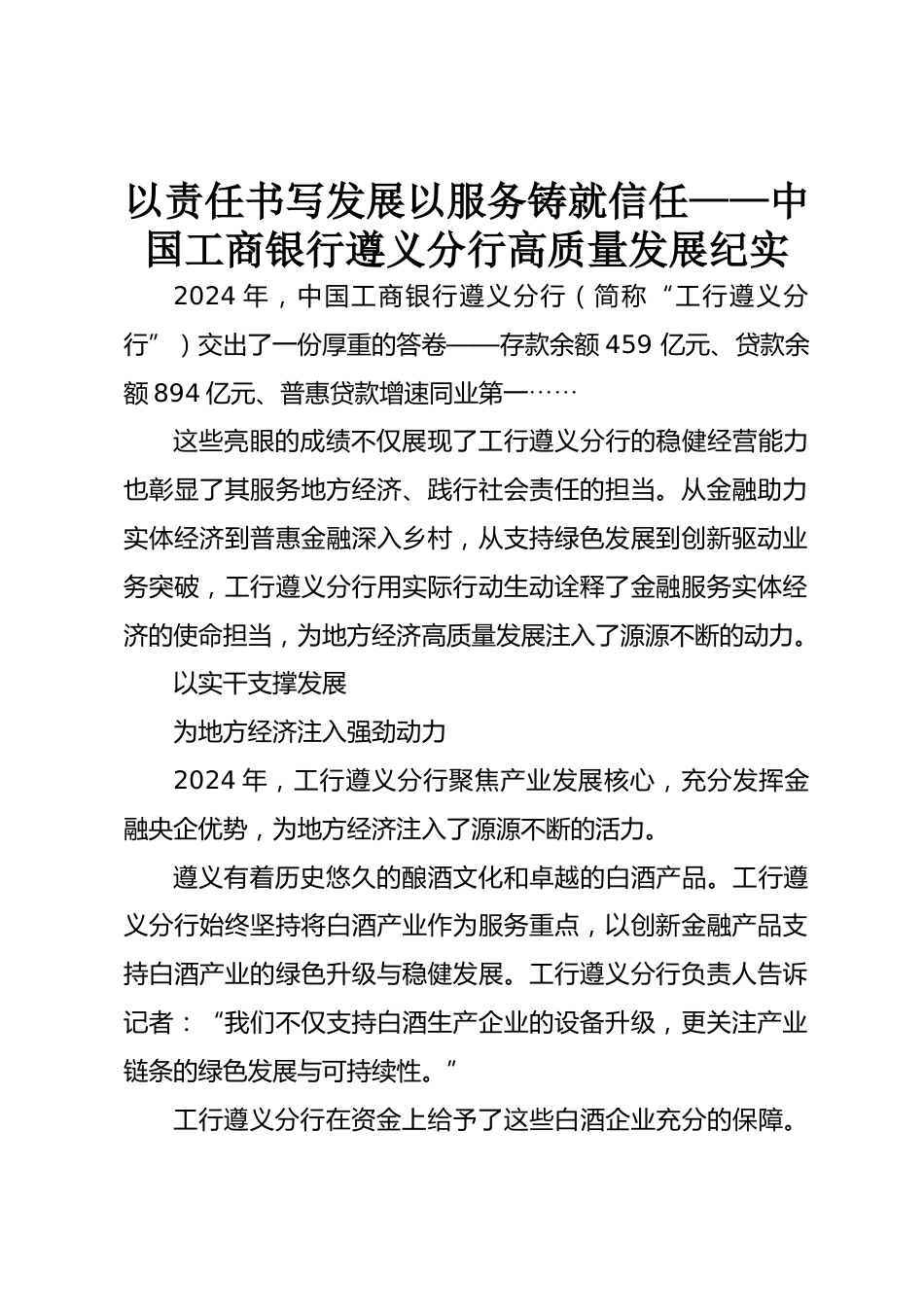 以責(zé)任書(shū)寫(xiě)發(fā)展 以服務(wù)鑄就信任——中國(guó)工商銀行遵義分行高質(zhì)量發(fā)展紀(jì)實(shí)