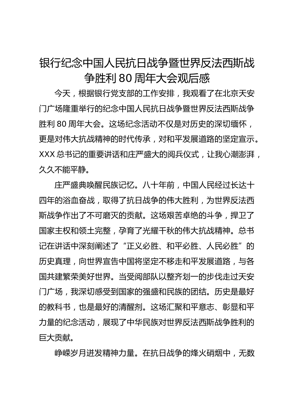 銀行紀(jì)念中國(guó)人民抗日戰(zhàn)爭(zhēng)暨世界反法西斯戰(zhàn)爭(zhēng)勝利80周年大會(huì)觀后感