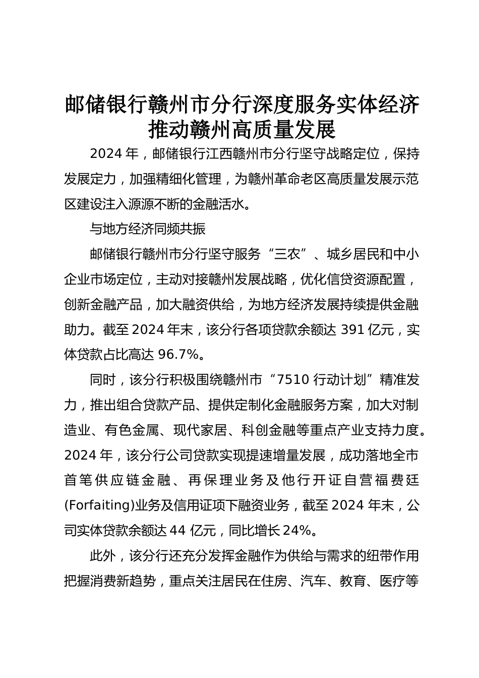 郵儲(chǔ)銀行贛州市分行 深度服務(wù)實(shí)體經(jīng)濟(jì) 推動(dòng)贛州高質(zhì)量發(fā)展