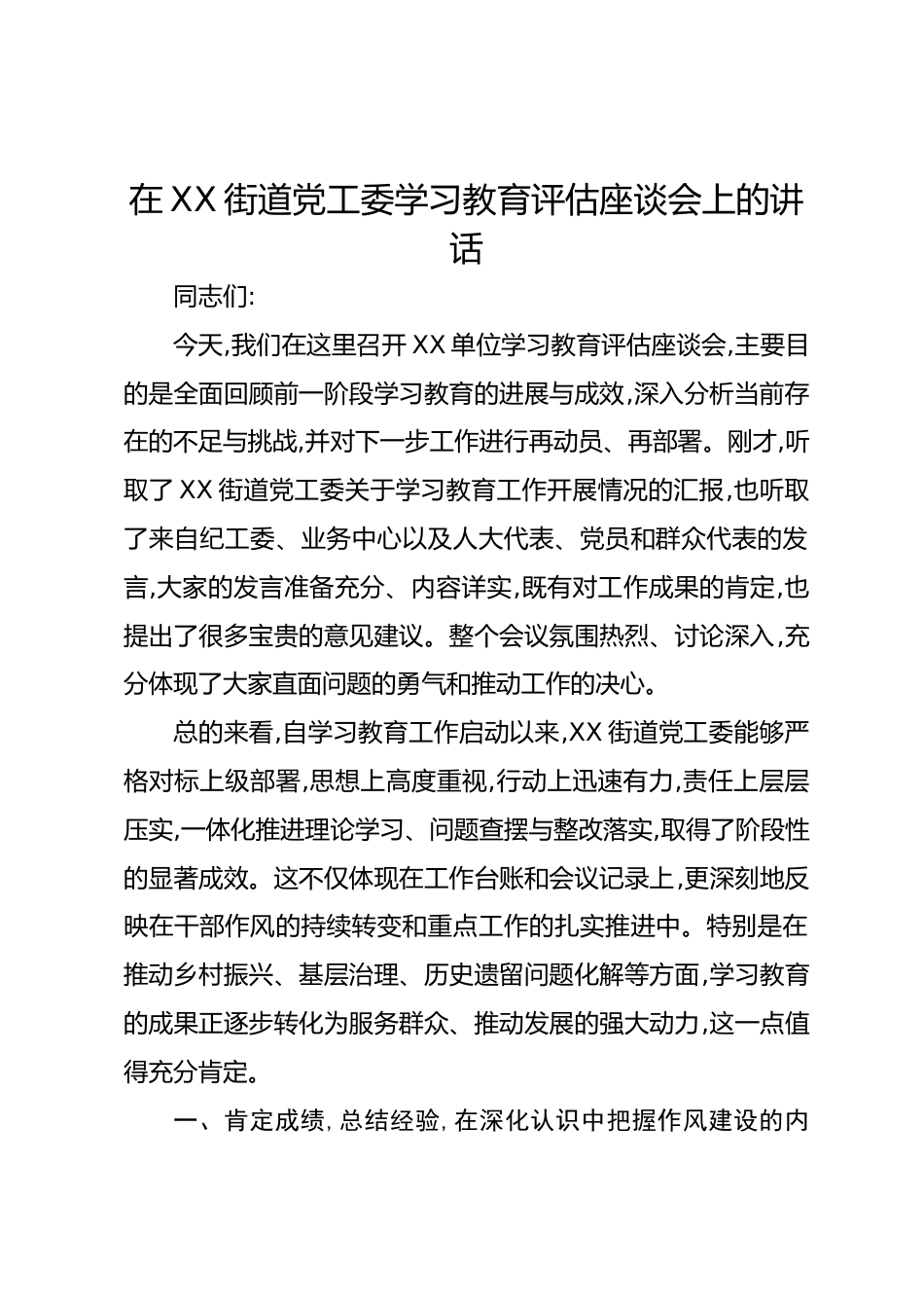 在XX街道黨工委學(xué)習(xí)教育評估座談會上的講話