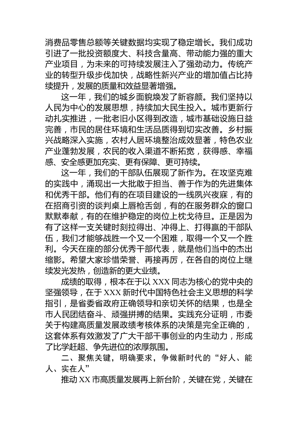 在XX市2025年度高質(zhì)量發(fā)展政績(jī)考核總結(jié)大會(huì)上的講話
