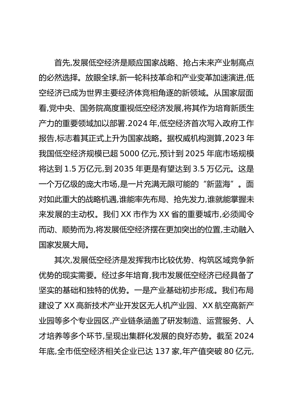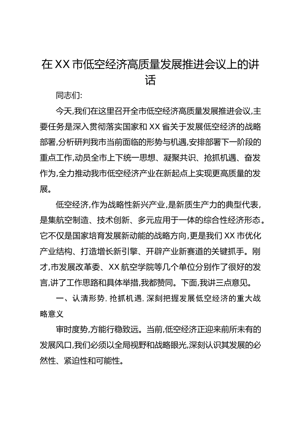在XX市低空經(jīng)濟(jì)高質(zhì)量發(fā)展推進(jìn)會議上的講話