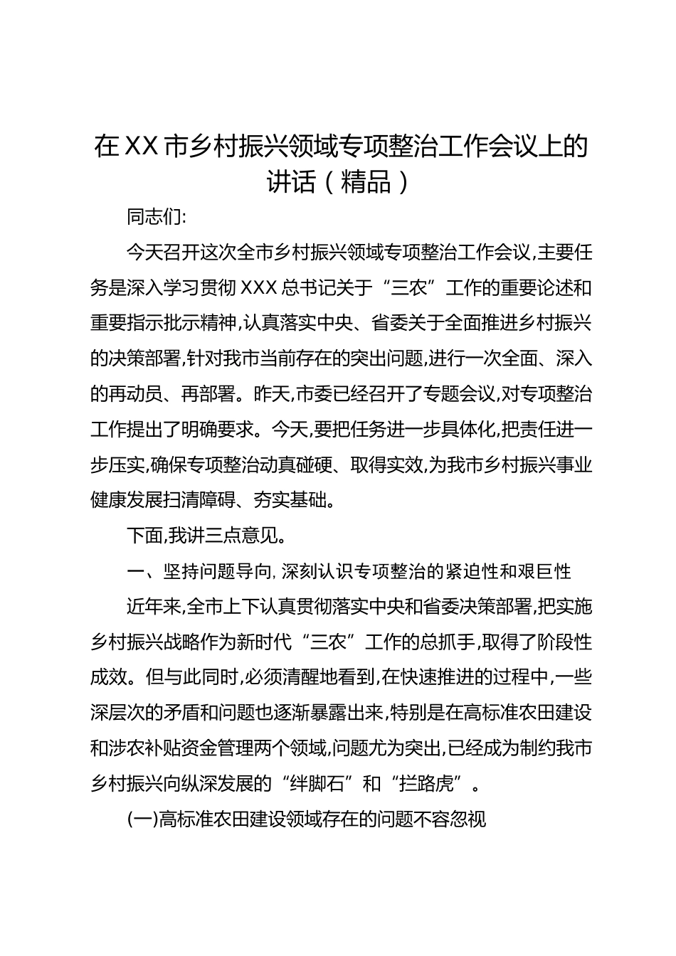 在XX市鄉(xiāng)村振興領(lǐng)域?qū)m?xiàng)整治工作會議上的講話(精品)