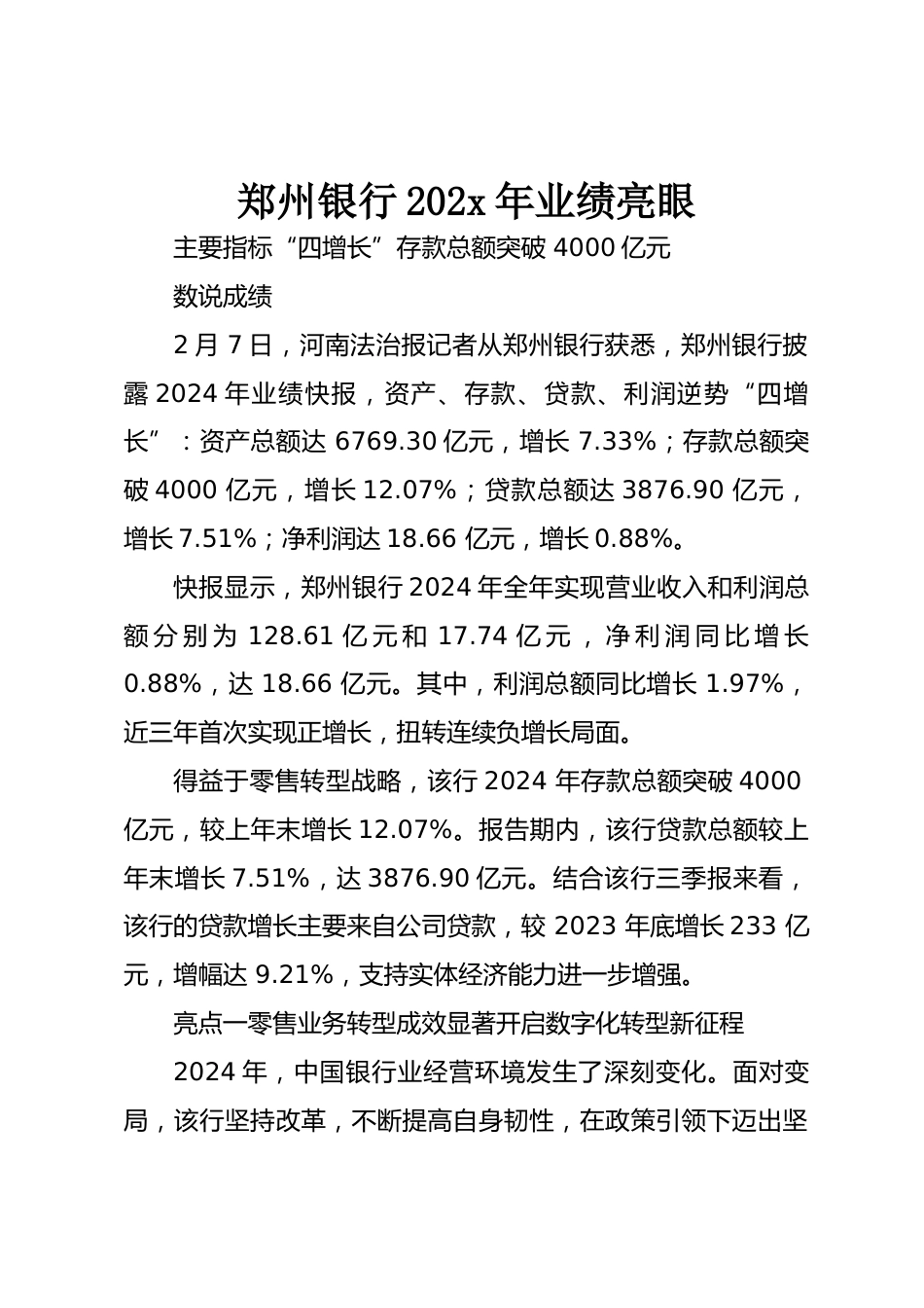 鄭州銀行 202x年業(yè)績(jī)亮眼