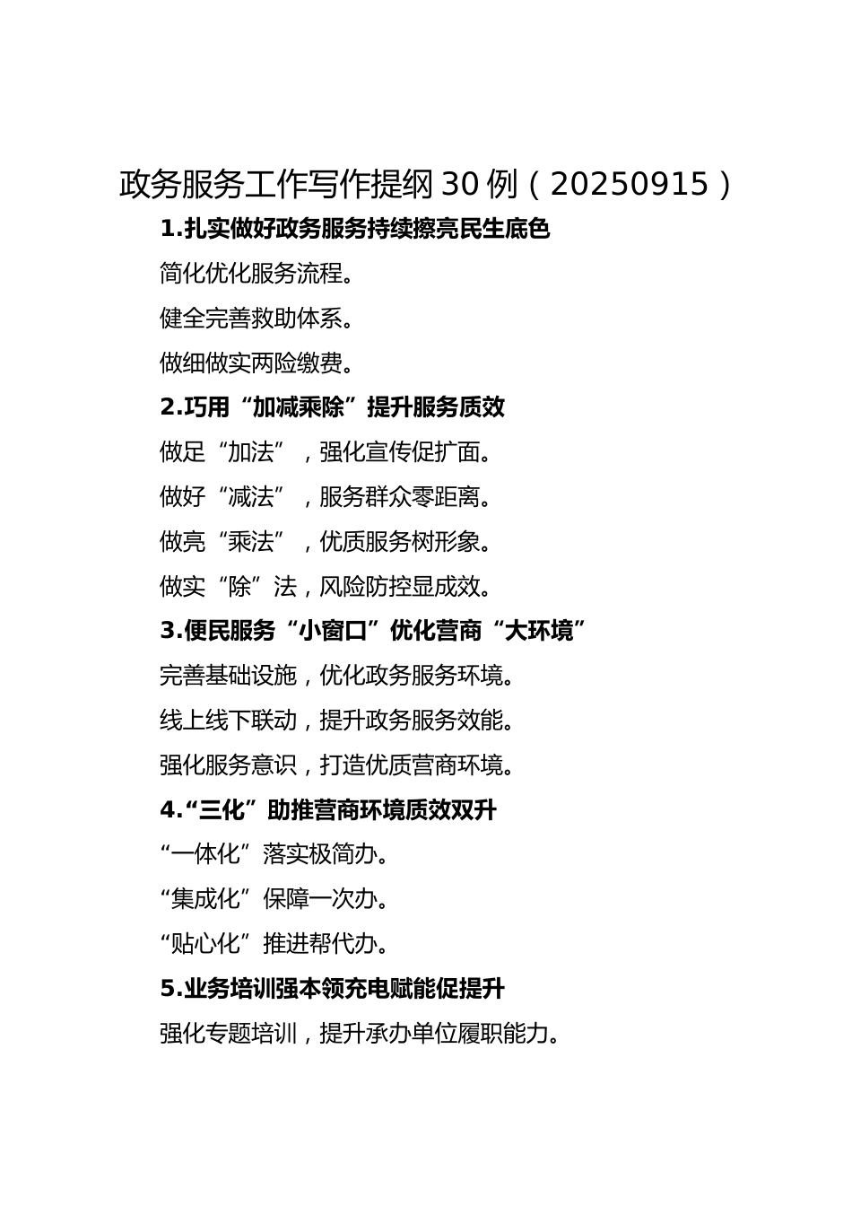 政務(wù)服務(wù)工作寫作提綱30例(20250915)