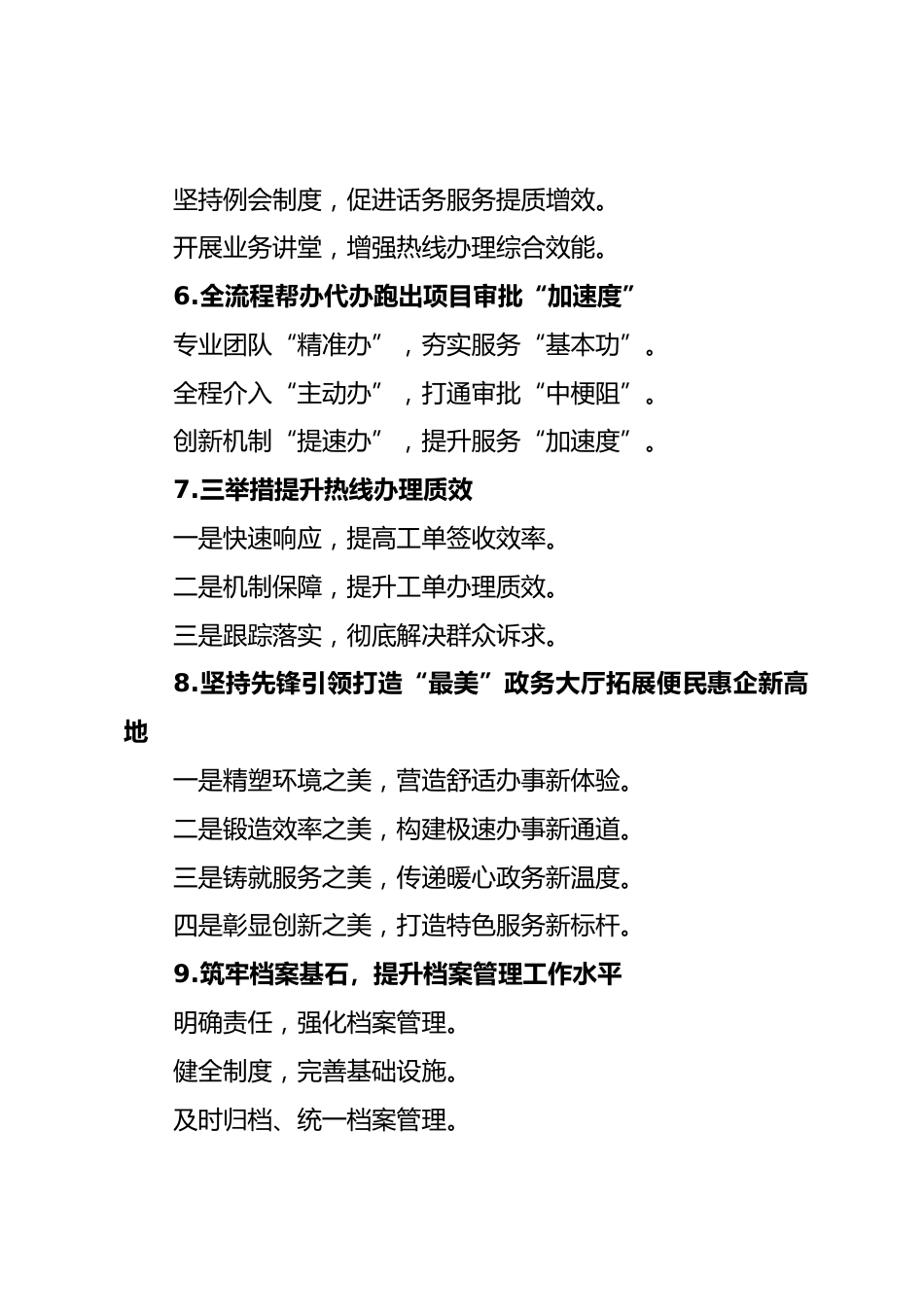 政務(wù)服務(wù)工作寫作提綱30例(20250915)1.扎實(shí)做好政務(wù)服務(wù)持續(xù)擦亮民生底色簡(jiǎn)化優(yōu)化服務(wù)流程。健全完善救助體系。做細(xì)做實(shí)兩險(xiǎn)繳費(fèi)。2.巧用“加減乘除”提升服務(wù)質(zhì)效做足“加法”,強(qiáng)化宣傳促擴(kuò)面。做好“減法”,服務(wù)群眾零距離。做亮“乘法”,優(yōu)質(zhì)服務(wù)樹(shù)形象。做實(shí)“除”法,風(fēng)險(xiǎn)防控顯成效。3.便民服務(wù)“小窗口”優(yōu)化營(yíng)商“大環(huán)境”完善基礎(chǔ)設(shè)施,優(yōu)化政務(wù)服務(wù)環(huán)境。線上線下聯(lián)動(dòng),提升政務(wù)服務(wù)效能。強(qiáng)化服務(wù)意識(shí),打造優(yōu)質(zhì)營(yíng)商環(huán)境。4.“三化”助推營(yíng)商環(huán)境質(zhì)效雙升“一體化”落實(shí)極簡(jiǎn)辦?!凹苫北U弦淮无k?!百N心化”推進(jìn)幫代辦。5.業(yè)務(wù)培訓(xùn)強(qiáng)本領(lǐng)充電賦能促...